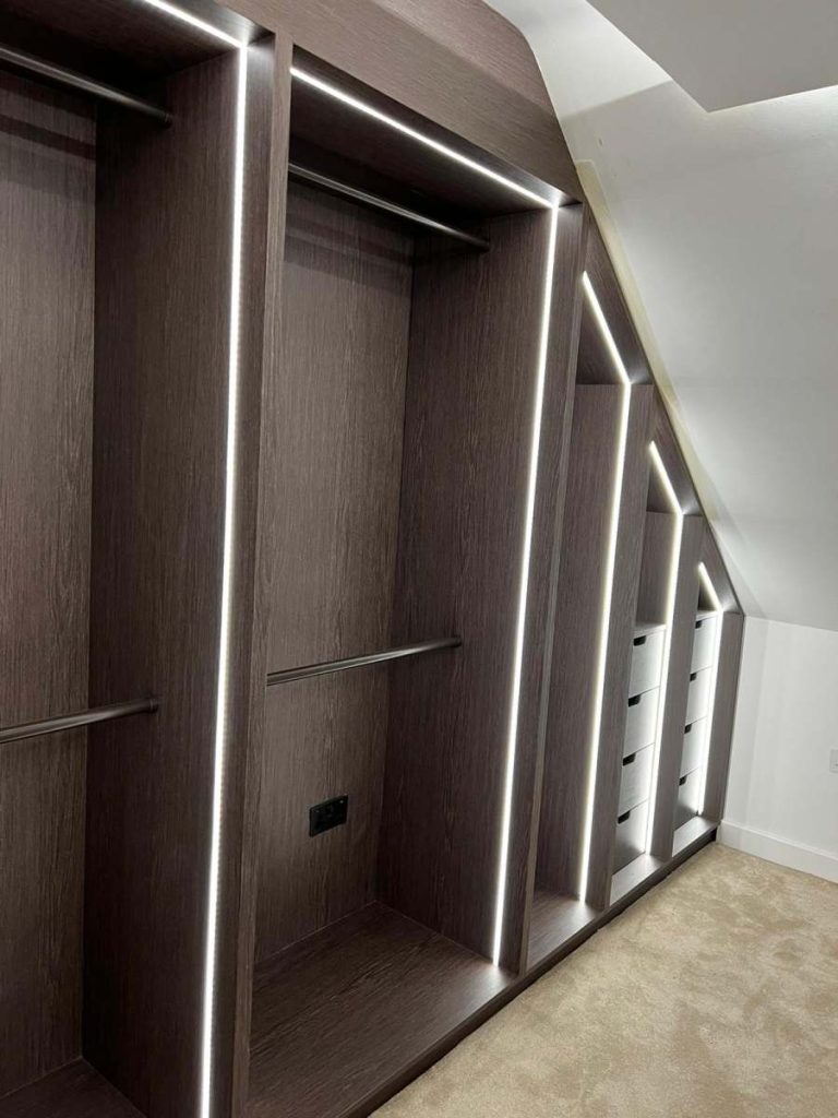 Scope: The project involves wrapping various pieces of custom-made bedroom furniture, including wardrobes, and bed frames.